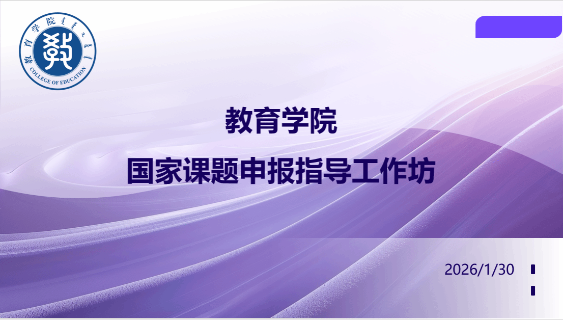 为进一步推动学院有组织科研,为各位老师申报国家课题做好支持与服务工作,太阳成集团tyc41183于2026年1月30日-31日采用在线会议形式,分别邀请北京师范大学余清臣教授、南京师范大学沈书生教授和陕西师范大学张立国教授就课题选题及申报等内容进行指导。学院近30位老师参加了指导,工作坊由学院边琦教授主持。